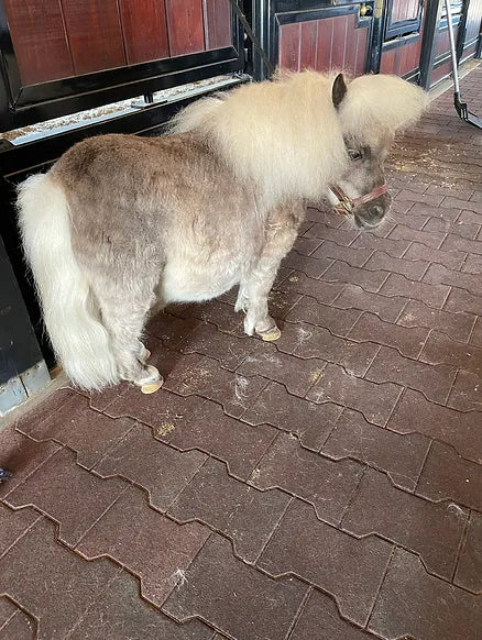 I inquired about him. Clarence was estimated to be between the ages of 25-30 years (our vet later concurred on the later side of 30) and had been used as a pony ride pony all his life.